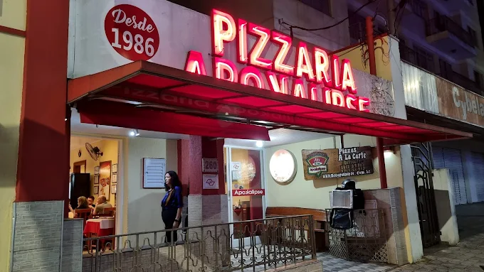 Com mais de 90 sabores no cardápio, a Pizzaria Apokalipse é referência na cidade por suas pizzas artesanais, ambiente acolhedor e tradição familiar. Premiada nacionalmente, combina receitas clássicas e criativas, com destaque para ingredientes especiais como alcachofra, camarão e bacalhau. Aberta de terça a domingo, é parada obrigatória para os amantes de boa pizza!
